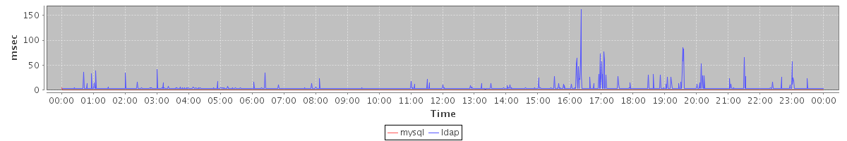 avg(mysql) = 0.25 avg(ldap) = 4.68