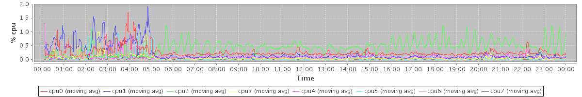 avg(cpu0) = 0.25 avg(cpu1) = 0.21 avg(cpu2) = 0.44 avg(cpu3) = 0.05 avg(cpu4) = 0.11 avg(cpu5) = 0.03 avg(cpu6) = 0.06 avg(cpu7) = 0.03