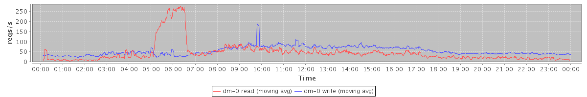 avg(dm-1 read) = 1410.47 avg(dm-1 write) = 449.57