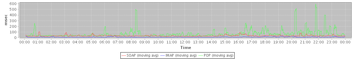 Host zm09.stanford.edu: Mailboxd: Response Time by Client Protocol