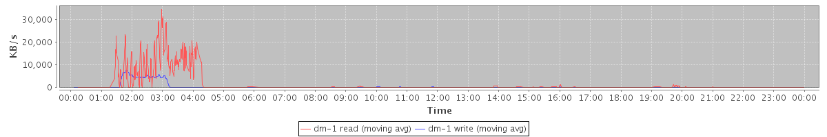 avg(dm-1 read) = 24.21 avg(dm-1 write) = 2.13