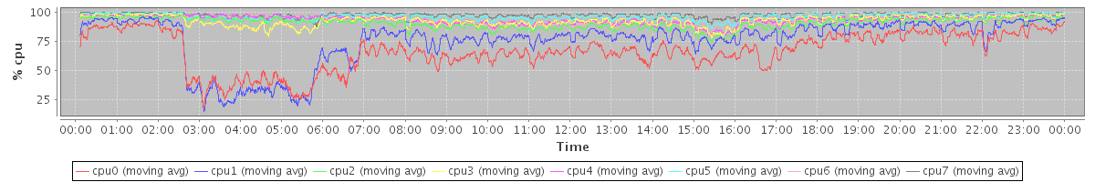 avg(cpu0) = 1.53 avg(cpu1) = 1.52 avg(cpu2) = 1.08 avg(cpu3) = 0.96 avg(cpu4) = 0.87 avg(cpu5) = 0.70 avg(cpu6) = 0.89 avg(cpu7) = 0.60