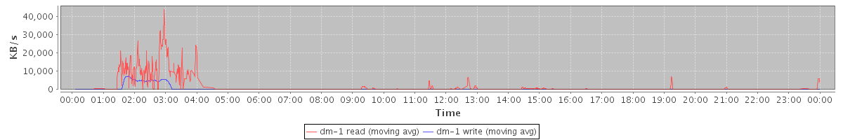 avg(dm-1 read) = 25.58 avg(dm-1 write) = 2.14