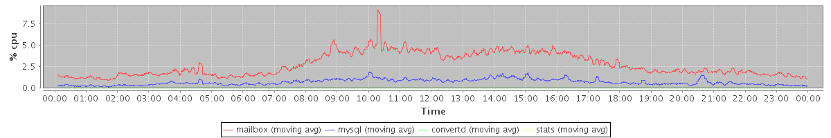 avg(mailbox) = 2.74 avg(mysql) = 0.70 avg(convertd) = 0.00 avg(stats) = 0.00