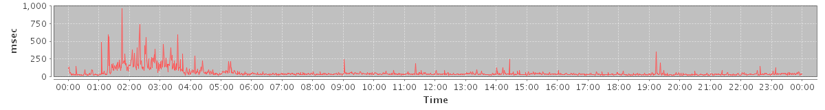 avg(ModifyAppointmentRequest) = 300.71 avg(SendMsgRequest) = 269.10 avg(CreateSignatureRequest) = 355.00 avg(DeleteAccountRequest) = 80956.00 avg(ForwardAppointmentInviteRequest) = 1149.00 avg(SendInviteReplyRequest) = 469.34 avg(AutoCompleteRequest) = 477.86 avg(DeleteSignatureRequest) = 270.36 avg(BackupRequest) = 15148.50 avg(GetQuotaUsageRequest) = 3171.00