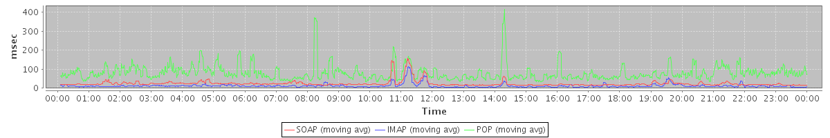Host zm06.stanford.edu: Mailboxd: Response Time by Client Protocol
