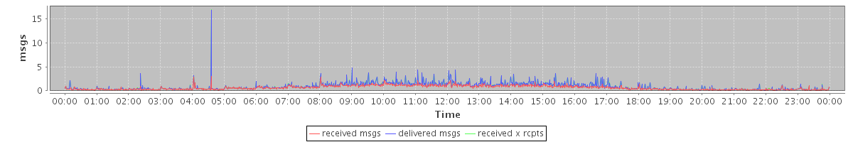 avg(received msgs) = 0.63 avg(delivered msgs) = 0.84 avg(received x rcpts) = 0.85