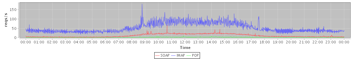 Host zm03.stanford.edu: Mailboxd: Request Rate by Client Protocol