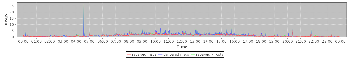 avg(received msgs) = 1.16 avg(delivered msgs) = 1.39 avg(received x rcpts) = 1.46