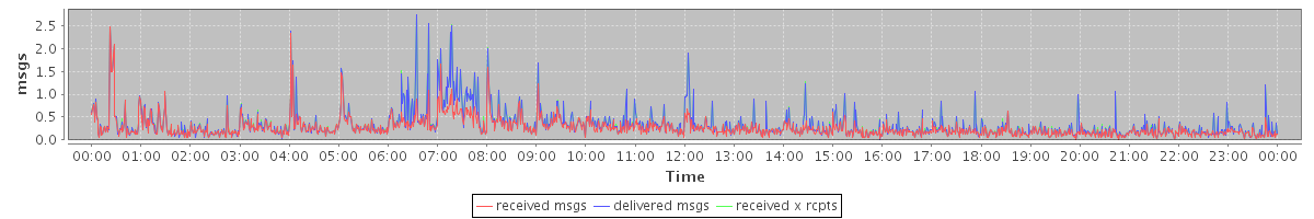 avg(received msgs) = 0.27 avg(delivered msgs) = 0.33 avg(received x rcpts) = 0.33
