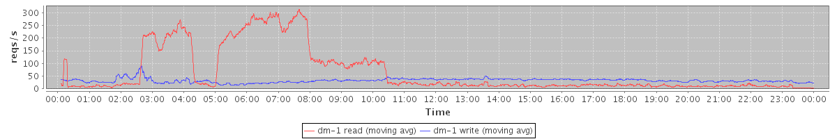 avg(dm-1 read) = 1243.10 avg(dm-1 write) = 684.29