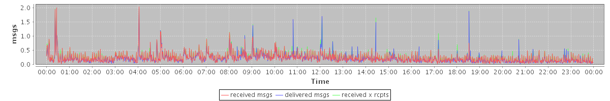 avg(received msgs) = 0.23 avg(delivered msgs) = 0.21 avg(received x rcpts) = 0.25