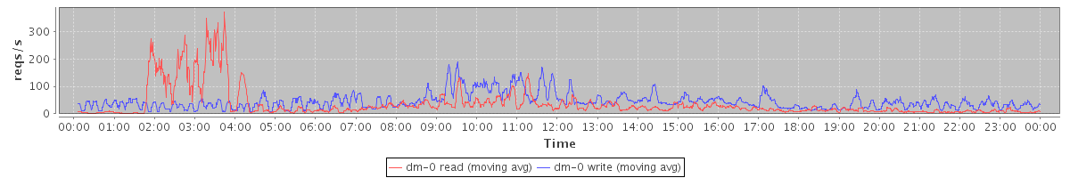 avg(dm-2 read) = 125.13 avg(dm-2 write) = 328.40