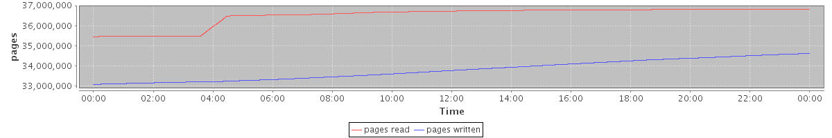 avg(pages read) = 36499223.17 avg(pages written) = 33784074.10