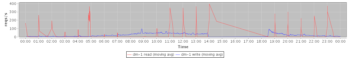 avg(dm-1 read) = 5.60 avg(dm-1 write) = 24.73