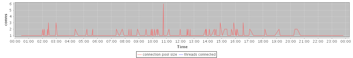 avg(connection pool size) = 0.25 avg(threads connected) = 0.00