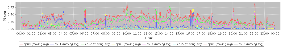 avg(cpu0) = 0.09 avg(cpu1) = 0.19 avg(cpu2) = 0.02 avg(cpu3) = 0.06 avg(cpu4) = 0.03 avg(cpu5) = 0.03 avg(cpu6) = 0.02 avg(cpu7) = 0.01