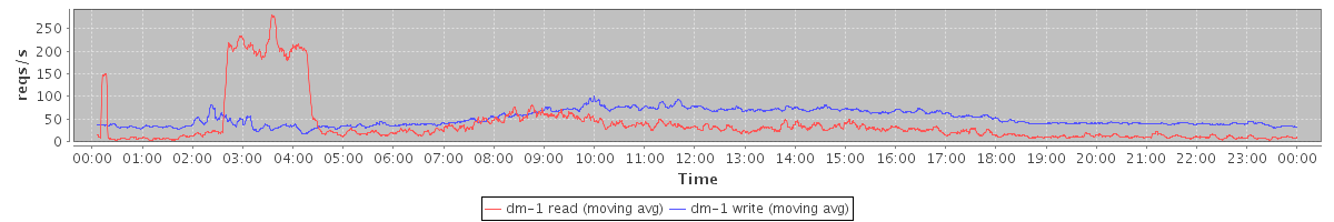 avg(dm-1 read) = 637.49 avg(dm-1 write) = 1169.39