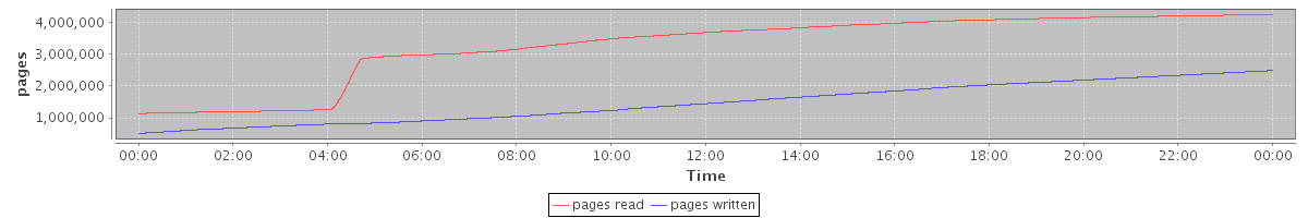 avg(pages read) = 3263401.54 avg(pages written) = 1471252.11