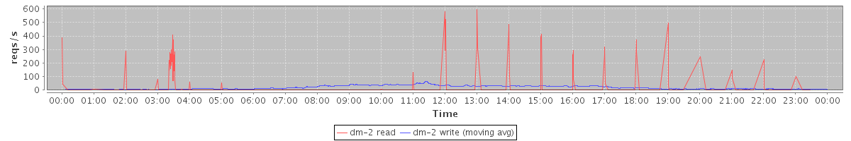 avg(dm-2 read) = 5.21 avg(dm-2 write) = 18.63