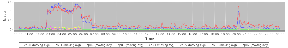 avg(cpu0) = 0.20 avg(cpu1) = 0.16 avg(cpu2) = 0.11 avg(cpu3) = 0.09 avg(cpu4) = 0.09 avg(cpu5) = 0.03 avg(cpu6) = 0.07 avg(cpu7) = 0.01