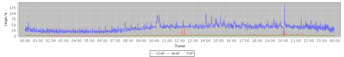 Host zm09.stanford.edu: Mailboxd: Request Rate by Client Protocol