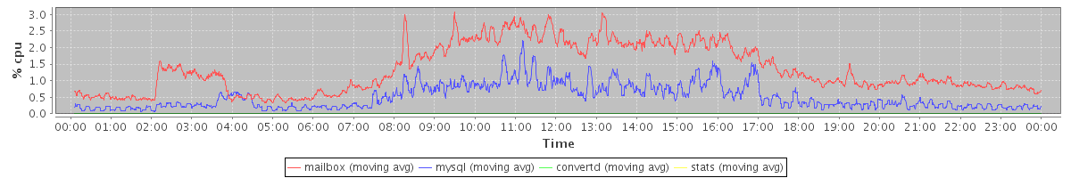 avg(mailbox) = 8752.69 avg(mysql) = 16535.80 avg(convertd) = 0.00 avg(stats) = 0.00