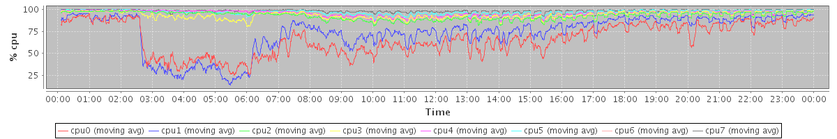 avg(cpu0) = 1.45 avg(cpu1) = 1.45 avg(cpu2) = 0.94 avg(cpu3) = 0.83 avg(cpu4) = 0.71 avg(cpu5) = 0.56 avg(cpu6) = 0.81 avg(cpu7) = 0.47