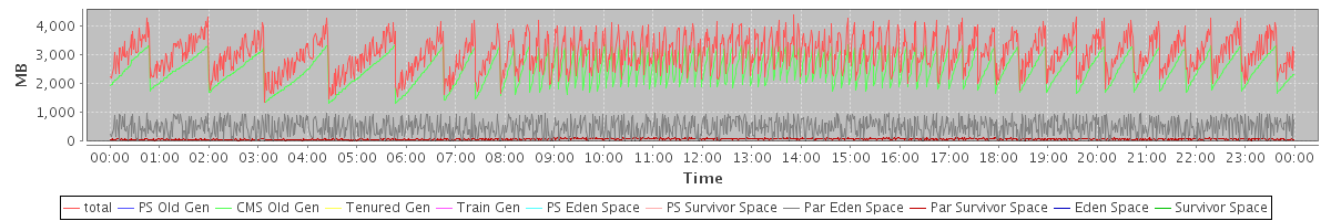 avg(total) = 3053.94 avg(PS Old Gen) = 0.00 avg(CMS Old Gen) = 2490.07 avg(Tenured Gen) = 0.00 avg(Train Gen) = 0.00 avg(PS Eden Space) = 0.00 avg(PS Survivor Space) = 0.00 avg(Par Eden Space) = 491.42 avg(Par Survivor Space) = 72.44 avg(Eden Space) = 0.00 avg(Survivor Space) = 0.00
