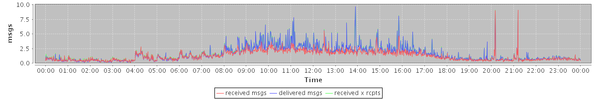 avg(received msgs) = 1.28 avg(delivered msgs) = 1.57 avg(received x rcpts) = 1.61