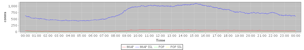 Host zm06.stanford.edu: Mailboxd: Active Connections by Client Protocol