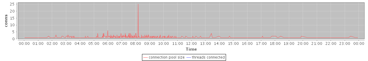 avg(connection pool size) = 0.53 avg(threads connected) = 0.00