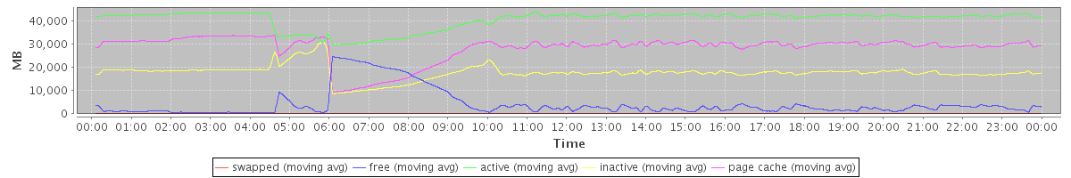 avg(swapped) = 37.37 avg(free) = 4235.47 avg(active) = 40413.22 avg(inactive) = 17689.28 avg(page cache) = 28345.88
