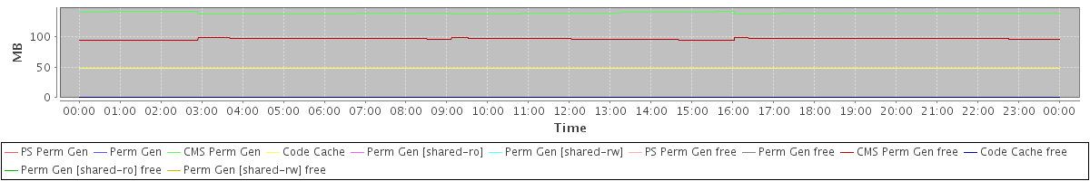 avg(PS Perm Gen) = 0.00 avg(Perm Gen) = 0.00 avg(CMS Perm Gen) = 139.07 avg(Code Cache) = 47.54 avg(Perm Gen [shared-ro]) = 0.00 avg(Perm Gen [shared-rw]) = 0.00 avg(PS Perm Gen free) = 0.00 avg(Perm Gen free) = 0.00 avg(CMS Perm Gen free) = 96.49 avg(Code Cache free) = 0.34 avg(Perm Gen [shared-ro] free) = 0.00 avg(Perm Gen [shared-rw] free) = 0.00