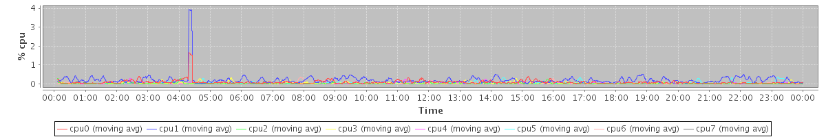 avg(cpu0) = 0.08 avg(cpu1) = 0.19 avg(cpu2) = 0.02 avg(cpu3) = 0.03 avg(cpu4) = 0.02 avg(cpu5) = 0.03 avg(cpu6) = 0.02 avg(cpu7) = 0.01