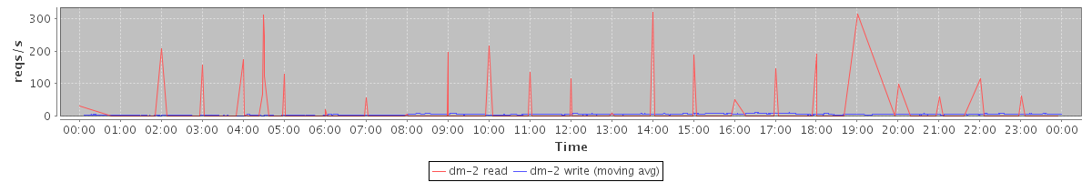 avg(dm-1 read) = 23.06 avg(dm-1 write) = 1.95