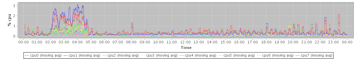 avg(cpu0) = 0.08 avg(cpu1) = 0.19 avg(cpu2) = 0.02 avg(cpu3) = 0.04 avg(cpu4) = 0.01 avg(cpu5) = 0.03 avg(cpu6) = 0.02 avg(cpu7) = 0.02