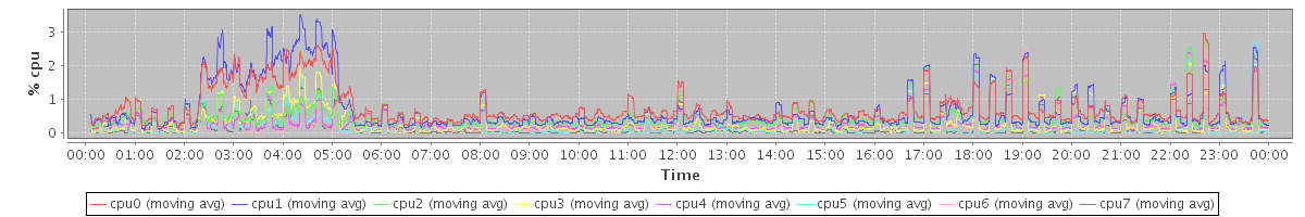 avg(cpu0) = 0.07 avg(cpu1) = 0.18 avg(cpu2) = 0.02 avg(cpu3) = 0.04 avg(cpu4) = 0.02 avg(cpu5) = 0.03 avg(cpu6) = 0.02 avg(cpu7) = 0.02