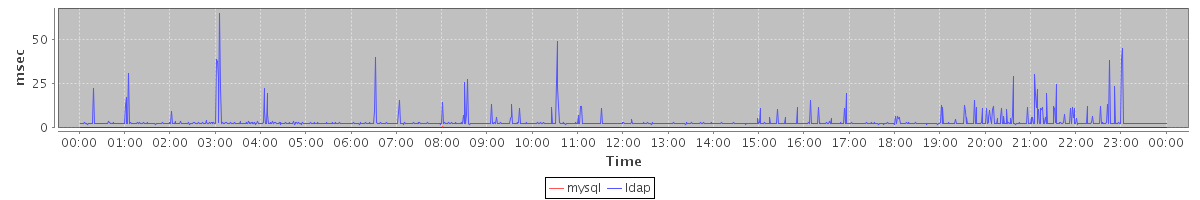 avg(mysql) = 0.18 avg(ldap) = 3.34