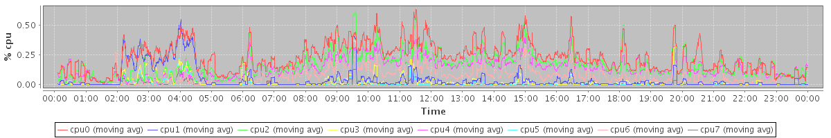 avg(cpu0) = 0.09 avg(cpu1) = 0.18 avg(cpu2) = 0.03 avg(cpu3) = 0.04 avg(cpu4) = 0.02 avg(cpu5) = 0.03 avg(cpu6) = 0.02 avg(cpu7) = 0.01