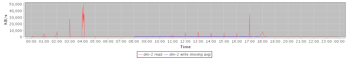avg(dm-2 read) = 5.05 avg(dm-2 write) = 20.75