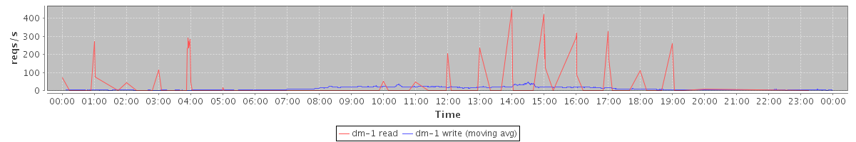avg(dm-1 read) = 2.75 avg(dm-1 write) = 11.54