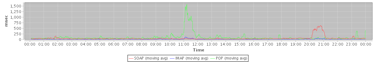 Host zm01.stanford.edu: Mailboxd: Response Time by Client Protocol
