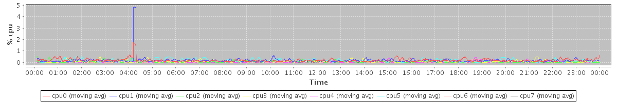 avg(cpu0) = 0.26 avg(cpu1) = 0.18 avg(cpu2) = 0.18 avg(cpu3) = 0.12 avg(cpu4) = 0.12 avg(cpu5) = 0.11 avg(cpu6) = 0.06 avg(cpu7) = 0.03