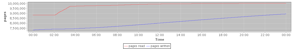 avg(pages read) = 9799970.69 avg(pages written) = 8054401.20