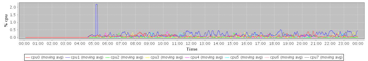avg(cpu0) = 0.07 avg(cpu1) = 0.15 avg(cpu2) = 0.02 avg(cpu3) = 0.03 avg(cpu4) = 0.02 avg(cpu5) = 0.02 avg(cpu6) = 0.02 avg(cpu7) = 0.02