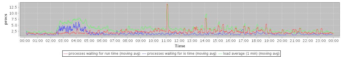 avg(processes waiting for run time) = 2.24 avg(processes waiting for io time) = 0.80 avg(load average (1 min)) = 3.46