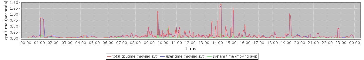 avg(total cputime) = 0.07 avg(user time) = 0.06 avg(system time) = 0.00