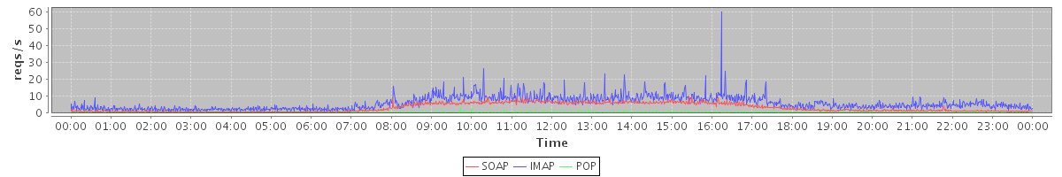 Host zm21.stanford.edu: Mailboxd: Request Rate by Client Protocol
