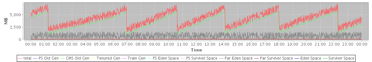 avg(total) = 4231.47 avg(PS Old Gen) = 0.00 avg(CMS Old Gen) = 3352.96 avg(Tenured Gen) = 0.00 avg(Train Gen) = 0.00 avg(PS Eden Space) = 0.00 avg(PS Survivor Space) = 0.00 avg(Par Eden Space) = 799.53 avg(Par Survivor Space) = 78.99 avg(Eden Space) = 0.00 avg(Survivor Space) = 0.00